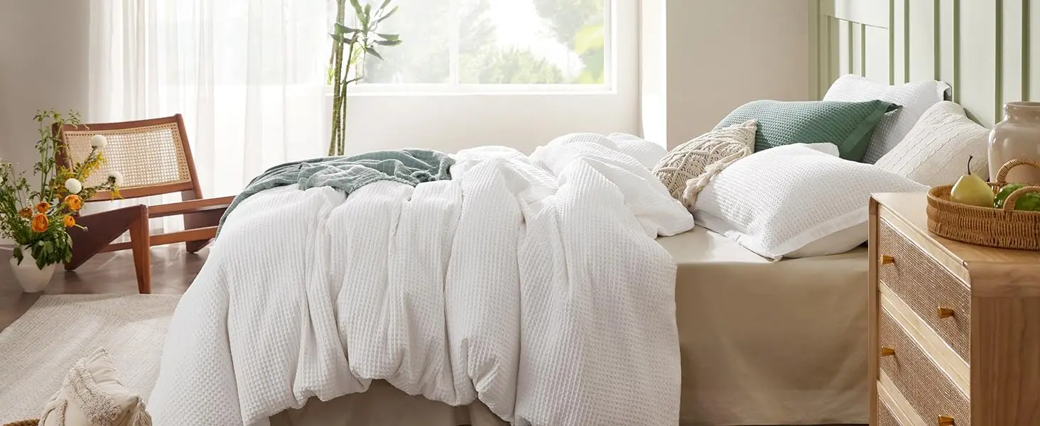 Classic Home Decor: This Bedsure cotton duvet cover set features a timeless waffle texture in classic solid colors, which adds a relaxed yet elevated look to your year-round bedding.