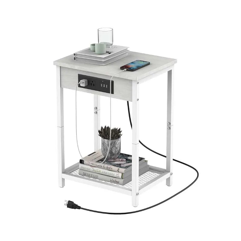 Nightstand with Charging Station Bedroom End Side Table with USB Ports outlets Modern Record Player Stand 2-Tier Bedside Table
