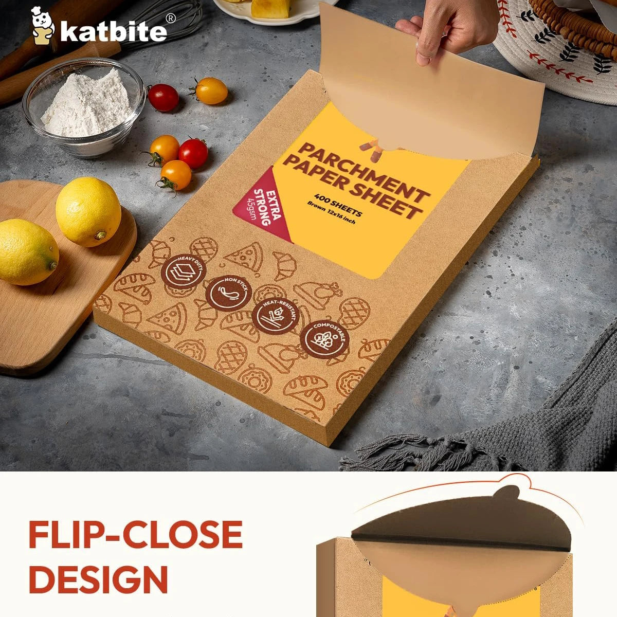 Katbite 400PCS Unbleached Parchment Paper Sheets, 12 x 16 IN Pre-Cut Baking Parchment, Heavy Duty Non-Stick Baking Paper for Half Sheet Cookie Bread Cake Pans, Grilling Meat Pizza,Oven,Air Fryer